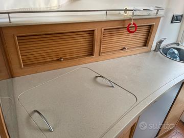 Imbarcazione del 2006 per veri amanti del navigare, coppia di motori Yanmar 240 hp con circa 600 h di moto. Manette elettroniche, passerella idraulica telescopica, trasmissione a linea d'asse con eliche controrotanti. Pompe acqua nuove.