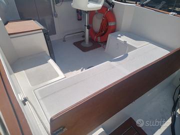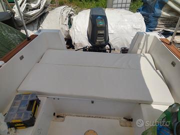 Lunghezza 540 x 210 completamente restaurata nel 2025, come nuova. Parabrezza e oblò nuovi. Cuscineria esterna nuova, interna in buone condizioni. Salpa ancora elettrico con catena e ancora tutto nuovo. Doccia a poppa con serbatoio e autoclave. Serbatoio benzina 53 litri con indicatore. Tendalino 4 archi nuovo. Frigorifero a compressore 12 volt 42 litri. Motore Mariner xr 40/60 Lightning due tempi, anno 2000 in perfette condizioni, qualsiasi prova, trim ed avviamento elettrici. Il carrello non è in vendita. Barca autosvuotante.