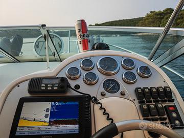 In vendita motoscafo Sessa Islamorada 23, anno 2005, con motore Volvo Penta 4.3 GXI (iniezione), motore nuovo del 2023, con collettori originali Volvo, utilizzato per circa 50 ore dopo l'installazione. Completamente rinnovato: nuovo impianto radio, altoparlanti, navigazione Garmin touch screen, luci flash, inverter 220V, tendalino 2024, musone di prua e telecomando per verricello. Verricello Quick con 50 metri di catena. Cabina con 2 letti, fornello a gas, frigorifero, lavello/rubinetto, WC elettrico (chiuso), serbatoio acque nere aggiuntivo e TV. Serbatoio acqua da 50 litri e serbatoio carburante da 188 litri. Condizioni ottime, sempre rimessato in hangar durante l'inverno (a terra), sia con il precedente proprietario che ora. Possibile accordo per il trasporto in tutta Italia.