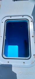 La panca di guida, in modalità "poggiaschiena" accoglie la vasca per il vivo che, tramite una presa a mare, viene alimentata da una pompa Tsunami.