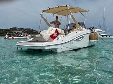 STORIA: L'imbarcazione è stata acquistata da me praticamente nuova ( 30 ore), usata poco al mare ed e stazionata su di un lago interno, ho installato alcuni migliorie come ad esempio l?allungamento del tendalino, gli inverter, prese elettriche 220v-USB, luci Led di poppa, luci Led nel pozzetto, luci Led interne, il navigatore Raimaryne Axion con gli interfaccia motore e strumenti, luci Led vano motore, sacche a rete per il contenimento, l?imbarcazione ha tutti gli accessori in dotazione da nuova in perfetto stato.