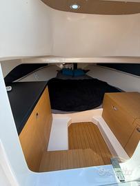 Bagno con maceratore elettrico e serbatoio acque nere, frigorifero, 2 batterie, carica batterie con presa 220V a banchina, Gps e ecoscandaglio con sonda passante Raymarine, radio Hertz a colori con impianto Rockford e amplificatore, illuminazione blu pozzetto, serbatoio acqua maggiorato 80 litri, tendalino completamente a scomparsa, tavolino e molto altro.