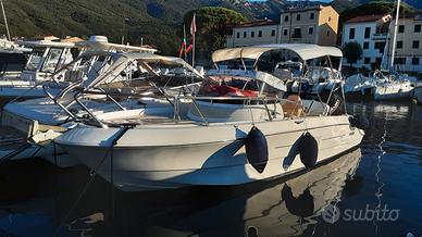 solida, sportiva e spaziosa, è pensata per chi cerca performance, comfort e design elegante. Grazie alla carena marina e alla generosa motorizzazione, offre navigazioni sicure e divertenti anche con mare formato.
