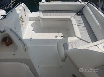 LUNGHEZZA 8,09 M LARGHEZZA 2,82 M ANNO 1997 MOTORI 2 X 140 HP MERCRUISER RICHIESTA € 30.000 IVA PAGATA Cabina matrimoniale , cucina, toilette doccia no bidet, dinette Trasformabile Ottime condizioni. 9 mesi l'anno in capannone. Motorizzata con due Mercruiser 3.0 LX benzina ciascuno. Di cui un motore montato nuovo luglio 2025 . La manutenzione ordinaria e sempre stata scrupolosamente effettuata da meccanici specializzati. Ancora, Apertura Vano Motore Elettrica, Autoclave, Batterie, Bussola, Caricabatterie, Contamiglia, Doccia esterna, Ecoscandaglio, Flap idraulici, GPS, Impianto antincendio, Lavandino nel Pozzetto, Piattaforma (poppa), Pompa di sentina automatica, Pompa di sentina manuale, Porta ingresso, Presa 220V banchina, Presa acqua banchina, Radio VHF, Rollbar, Salpa Ancore Elettrico (recente), Scaletta da bagno, Tavolo pozzetto (abbattibile), Tromba. Bimini, Copripozzetto, Cuscineria completa, 2 Fornello (gas), Frigorifero interno, Microonde, Prese interne 12v, Prese interne 220v, Radio AM/FM, Stereo, WC marino elettrico