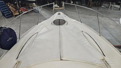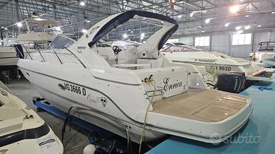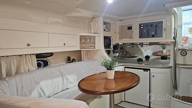 DATI PRINCIPALI Cantiere: Sessa Marine Modello: OYSTER 35 Anno Costruzione: 2002 Lunghezza: 10,6 m Condizione: usato Stato conservativo: ottimo Tipologia: Open Codice: 897777 L'equilibrio generale del C 35' è la migliore premessa per medie crociere di assoluto relax. Le sue linee morbide disegnano spazi estremamente vivibili, mentre la cura delle finiture esalta funzionalità e comfort di bordo. Un'atmosfera di benessere che si respira già nel pozzetto con doppi divani, tavolo e frigo bar, prosegue nella dinette con cucina attrezzata e culmina alla vista del grande letto a prua. Quando hai tutto, è facile sentirti a tuo agio. MOTORI Potenza: 2 x 260 Hp Modello: Mercruiser MCM 5.0 L MPI Tipologia: Entro Bordo Benzina Trasmissione: Duo Prop Ore moto: 1020 ABITABILITÀ Numero cabine: 2 Numero bagni: 1 Posti letto cabina: 4 Posti letto totali: 4 DATI TECNICI Larghezza: 3,53 m Immersione: 0,7 m Dislocamento: 7.720 Kg Persone trasportabili: 12 Serbatoio carburante: 515 l Serbatoio acqua: 240 l Scadenza Rina: 2030 Bandiera: Italia Categoria di navigazione: B - D'altura Impianto elettrico: 12V, 220V STRUMENTAZIONE ELETTRONICA DI NAVIGAZIONE Bussola, Comando motori elettronico, Contametri catena, Contamiglia, Display (Simrad multifunzione), Ecoscandaglio, GPS, Pilota automatico, Radio VHF. ALLESTIMENTO TECNICO E DI COPERTA Allarme motore, Ancora, Autoclave, Autogonfiabile, 4 Batterie, Caricabatterie, Colorazione speciale (Fiancate blu), Doccia esterna, Elica di prua - bow thruster, Flap idraulici, Impianto antincendio (Automatico in sala macchine), Indicatori Flaps, Luci di cortesia, Piattaforma (di poppa con teack), Pompa di sentina automatica, Pompa di sentina manuale, Pozzetto Teak, Presa 220V banchina, Presa acqua banchina, Rollbar, Salpa Ancore Elettrico, Scaletta da bagno, Tromba. DOTAZIONI DOMESTICHE DI BORDO Boiler, Prese interne 12v, Prese interne 220v, Riscaldamento (Webasto), WC marino elettrico.