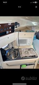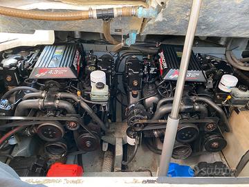 Radio bt, smart tv, gps e ecoscandaglio, flap idraulici, impianto di estinzione vano motori, motori Mercruiser 4.3L EFI 227cv ciascuno. Eliche acciaio,830 ore. Serbatoio benzina inox anno 2017 salpa ancora elettrico nuovo con doppi comandi, telo copertura invernale e tendalini anno 2022, prendisole nuovo.