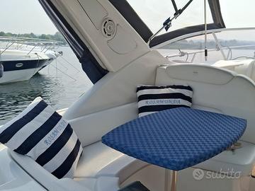 Elica di Prua , Strumento RAYMARINE per velocità ed ecoscandaglio - Piattaforma bagno prolungata con rivestimento in teak massello - Pavimentazione in teak nel pozzetto - Capottina camper con telo per copertura plancetta bagno per la protezione del teak - Secondo frigorifero a carica verticale nel pozzetto - Lavello pozzetto - Flaps - Radio stero - Tavolo pozzetto con possibilità di trasformazione a prendisole - Ampia cuscineria prendisole a prua - Verricello elettrico - Cucina in cabina con due fuochi a gas, lavello, forno a microonde e frigorifero da 140Lt. - Toilette separata con WC elettrico - Presa banchina con cavo e caricabatteria - Boiler bivalente - doccia a poppa con acqua calda e fredda - Doccia a prua nel gavone dell'ancora.