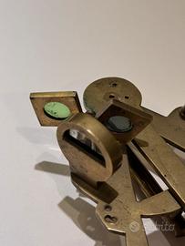 sestante nautico in ottone vintage con specchio e due filtri con lenti colorati.