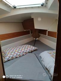 o zona cucina con gruppo basculante a due fuochi (bombola nel gavone di poppa),