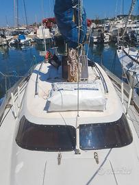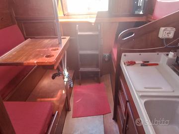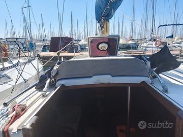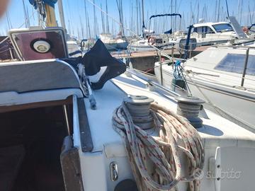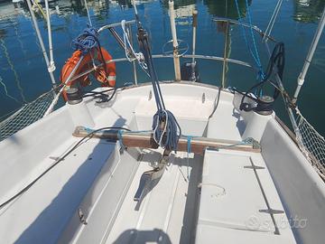 Cantiere Mistral ( Barcellona ) anno 1974, l.f.t. 9,30, natante entro 12 mg., 1 x 15 Suzuki fuoribordo, anno 2025, 10 ore moto, 2 batterie 100 Amp. nuove, una pompa sentina manuale, cabina doppia prua, quadrato trasformabile, tappezzeria nuova, cucina 1 fuoco, bagno con wc marino, serb. acqua strutturale 200 lt., autoclave, Vhf portatile, Gps Garmin, eco, webasto da montare, salpancore elettrico nuovo ital winch 500 da montare, randa e genoa su rollafiocco.