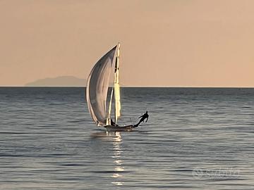 49er ovington in ottimo stato, rig in carbonio divisibile, non necessita di lavori. È stata da poco rinnovata la vernice sull'albero sulla deriva e timone,cambiati i componenti e cime usurate e riviste le terrazze. Vendo completo di due giochi di vele di cui uno in buono stato da allenamento, eccezion fatta per il gennaker che è provato ma utilizzabile, e l'altro gioco praticamente nuovo, utilizzato solo in occasione di 3 regate.