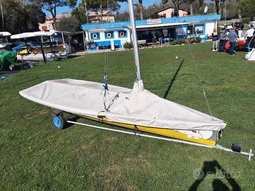 Deriva disegnata da Santarelli . Modulo 45 . Randa ,trapezio,albero divisibile. Carrello di alaggio. Bellissima e divertente