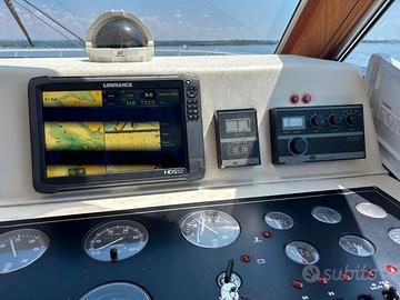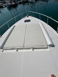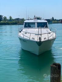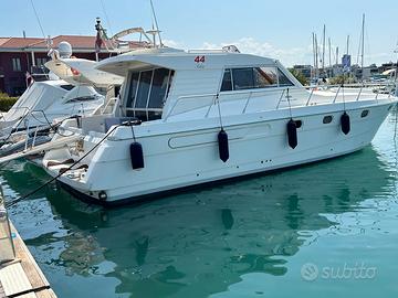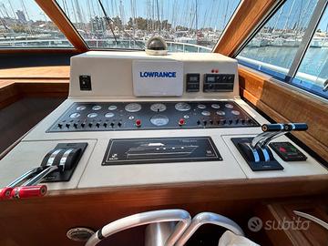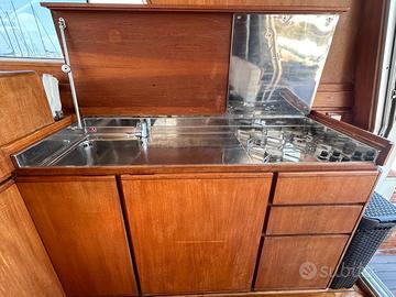 Anno di costruzione: 1991 Lunghezza mt.: 13,50 Larghezza mt.: 4,20 Motorizzazione: CATERPILLAR 2 x 425 hp EB DIESEL linea asse generatore, caricabatterie, wc elettrico, aria condizionata caldo/freddo, elica prua, salpa-ancora elettr., n°3 frigo, autopilota, gps/plotter, ecoscandaglio, bussola, vhf, passerella idraulica, gruette elettriche, telo invernale completo, telo copripozzetto, bimini pozzetto, cuscini prendisole prua. Tappezzerie interne nuove