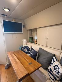 -Gli interni sono composti da 2 cabine,una cucina completa di elettrodomestici, un salotto con divano e tavolo e un wc separato.