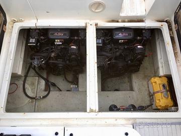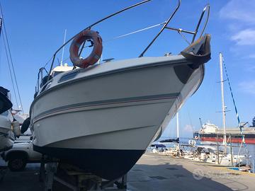 Svendo per realizzo immediato, causa problemi personali, Solcio Sealine 285 Ambassador. Anno di costruzione: 1989 Lunghezza FT: 9.00 Lunghezza omologazione: 8.33 Larghezza: 3.11 Portata: 8 persone. Posti letto: 4+2 Motori benzina: 2 x Volvo Penta 4.3 Gi, potenza 230 HP cad, anno 2000 con 520 ore. Motore destro con problemi elettrici (centralina), ma funzionante. Dotata di cucina a gas con doppio lavello, frigorifero, possibilità di inserimento forno. Ampia camera armatoriale, trasformabile in zona pranzo. Seconda camera con 2 letti singoli. Bagno con lavabo, wc, doccia e accesso alla seconda camera. Ampio pozzetto con divanetti e tavolo trasformabile in letto doppio. Tendalino estivo finestrato e copertura invernale. Visibile nel Porto di Savona.