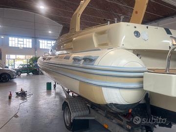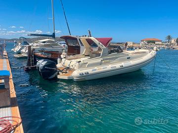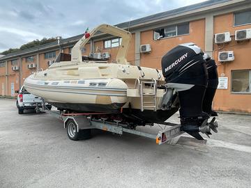 Per passaggio ad altra tipologia, vendo Gommone Solemar 27 Oceanic anno 2003 in ottime condizioni Lunghezza mt 8,50, Larghezza mt 3,50, Peso kg 2580, con Braket in vetroresina anno 2025, 2 motori Mercury Verado da 275 CV in ottime condizioni tagliandati, Ore motori 1800, Anno motori 2007, Elica di Prua, 2 serbatoi acqua 1 a prua da 120 Lt e l'altro in acciaio inox da 150 Lt, serbatoio benzina in acciaio da 300 Lt, frigo 12V in dinette, bagno nautico in dinette separato, 2 doccette esterne, una a prua e una a poppa, 2 batterie del 2025 da 120 Ah, Lavabo Interno, fornelli a gas, inverter 2025, caricabatterie, Ecoscandaglio, Impianto Stereo, GPS Plotter, Salpa ancora con doppio comando in consolle e a prua, Flap idraulici, 4 oblò apribili + 1 passo d'uomo, Rollbar con luci di via tromba e casse radio, Autoradio, enorme Gavone a Poppa dove prima erano installati 2 motori entrofuoribordo, pompa di sentina, autoclave, Cabina con altezza 180 cm 4 posti letto interni piu' 2 esterni, 2 Grandi Prendisole anteriore e posteriore, Tendalino, Chiusura esterna con Tenda nautica integrale, telone invernale, Tavolo esterno. Visibile a Rieti previo contatto telefonico. Luigi 335376305 Valuto permute con Sessa Key Largo 24 o Janneau Cap Camarat 6.5 wa o 7.5 wa o similari. Invio ulteriori foto solo previo contatto telefonico. Luigi 335376305