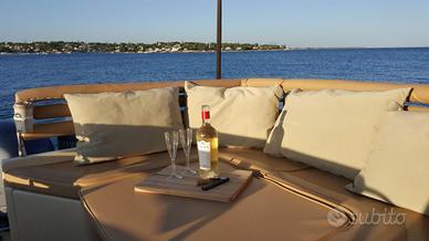 Bellissimo Solemar 32 Night&Day, in ottimo stato, NATANTE, motorizzato con 2x225 Yamaha. Full optional: tessuto color Panna Exsclusive, Roll Bar in vetroresina con luci di via, asta porta bandiera con luce 360 e tromba acustica, tendalino di prua e di poppa con teli oscuranti, copertura pozzetto, musone di prua in vetroresina con salpa ancora, completo di verricello elettrico, ancora e 50 Mt. di catena, consolle con parabrezza fumè, cuscineria prendisole di prua, cuscineria prendisole di poppa, tientibene in acciaio inox di prua e di poppa con cuscini imbottiti, divano poppiero con tavolo pranzo e completamento letto/prendisole, rivestimento in simil teak su piano di calpestio NUOVO 2025, angolo cottura esterno con fornello a gas, lavello inox, frigorifero esterno, doccia serbatoio e autoclave, arredamento cabina con letto matrimoniale di prua e letto di poppa, locale separato con wc elettrico, doccia e lavandino, interni in tessuto, N. 2 serbatoio carburante con strumenti indicatore livello, boiler acqua calda, carica batterie elettronico 220 V, presa di corrente 220 V in cabina, VHF con DSC, radio stereo con altoparlanti in pozzetto, bussola, faro girevole con joystick su consolle, pompa di sentina manuale ed automatica, scaletta di risalita. Si valutano permute: Marco, Sacs, Stingher, Capelli, Zodic, Nuova Jolly, Joker Boat Clubman, Ranieri, Led, Cab, Pirelli. Richiesta: 60.000+saldo finanziamento