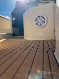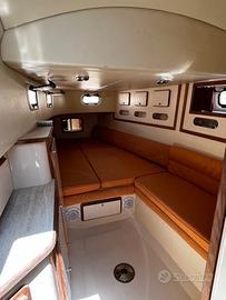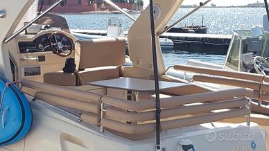 Bellissimo Solemar 32 Night&Day, in ottimo stato, NATANTE, motorizzato con 2x250 Yamaha. Full optional: tessuto color Panna Exsclusive, Roll Bar in vetroresina con luci di via, asta porta bandiera con luce 360 e tromba acustica, tendalino di prua e di poppa con teli oscuranti, copertura pozzetto, musone di prua in vetroresina con salpa ancora, completo di verricello elettrico, ancora e 50 Mt. di catena, consolle con parabrezza fumè, cuscineria prendisole di prua, cuscineria prendisole di poppa, tientibene in acciaio inox di prua e di poppa con cuscini imbottiti, divano poppiero con tavolo pranzo e completamento letto/prendisole, rivestimento in simil teak su piano di calpestio NUOVO 2025, angolo cottura esterno con fornello a gas, lavello inox, frigorifero esterno, doccia serbatoio e autoclave, arredamento cabina con letto matrimoniale di prua e letto di poppa, locale separato con wc elettrico, doccia e lavandino, interni in tessuto, N. 2 serbatoio carburante con strumenti indicatore livello, boiler acqua calda, carica batterie elettronico 220 V, presa di corrente 220 V in cabina, VHF con DSC, radio stereo con altoparlanti in pozzetto, bussola, faro girevole con joystick su consolle, pompa di sentina manuale ed automatica, scaletta di risalita. Si valutano permute: Marco, Sacs, Stingher, Capelli, Zodic, Nuova Jolly, Joker Boat Clubman, Ranieri, Led, Cab, Pirelli.