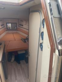 Dotazioni di bordo : nel 2019 sono stati eseguiti i seguenti lavori : tappezzeria,sedile guida , boiler acqua calda ,salpa ancora,autoclave ,idroguida , piedi motore rigenerati a nuovo nel 2023 , impianto elettrico da banchina 220v fatto nuovo nel 2023 , alza gabinetto elettrico, plancette con pedana estensibile con pistone idraulico . Copertura completa per chiudere a notte tutto il pozzetto