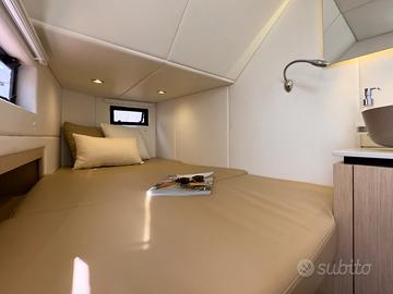 - Cabina con comodo letto per due persone e bagno con wc elettrico, oblò e impianto acque nere;