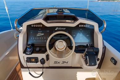 Solemar 34 SX, motorizzato con 2x350 Hp Mercury V10, battello nuovo in pronta consegna. Il battello più innovativo disponibile sul mercato, installa elettronica e domotica di ultima generazione.