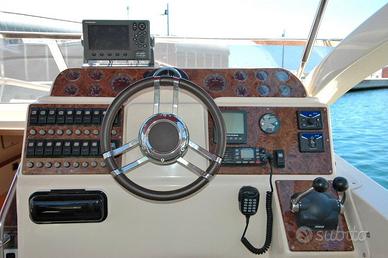 Solemar 44 Oceanic motorizzato con Volvo Penta 2 x 370 Cv con circa 600 ore di moto. Battello con 3 cabine e dinetta interna, unico nel suo genere. Interni composti da: 2 cabine doppie di poppa con finiture in eco-pelle 1 cabina amatoriale di prua con finiture in eco-pelle 1 locale toilette separato con wc marino elettrico, doccia e lavello 1 dinette composta da: Divano con rivestimento in pelle Angolo cucina con piano cottura, lavello e frigorifero Tavolo da pranzo Mobile con TV LCD Samsung 19” a scomparsa Prese di corrente 220 V in cabina Accessori: Verricello elettrico - Ancora 15 kg - Catena ancora 50 mt - Roll Bar con luci di navigazione e faretti per illuminazione pozzetto - Impianto stereo esterno - Consolle di guida allestita con plancia comandi e volante con timoneria idraulica – VHF – Bussola – Chart/Video plotter/Ecoscandaglio integrato Furuno - Parabrezza fume- Doccia esterna - Presa di corrente in banchina 220 V - Rivestimento in teak su piano calpestìo interno ed esterno - Cuscineria completa di poppa e di prua stilizzata Solemar – Pozzetto con divano a U e tavolo pranzo trasformabile in ampio prendisole – Ampio prendisole di prua - Prendisole a poppa - Mobile con lavello e fornello esterno - Frigorifero inox esterno 42 l - Sala macchine con apertura idraulica - Differenziale salvavita 220 V - Luci di cortesia per passaggio laterale poppa/prua - Plancia di poppa - Pompa di sentina – Generatore da 2,5 kw - Serbatoi carburante 2x500 l - Serbatoio acqua con doccia interna e autoclave 300 l - Serbatoio acque nere 150 l. Richiesta: €120.000+Saldo Finanziamento