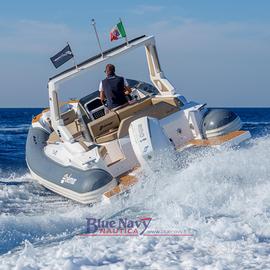 Il gommone, oltre dotazioni di serie, è cosi equipaggiato : strumentazione Raymarine Essential (con GPS 7),Kit linea 220V con presa banchina e carica batteria, kit Rollbar in vtr allestito con tendalino inox, Upgrade ancora e musone in acciaio inox, plancette maggiorate con scaletta a scomparsa, tavolo pozzetto in teak asportabile con cuscino addizionale, caricabatterie per smartphone wireless in consolle, kit allestimento bagno con wc, oblò e impianto acque nere.