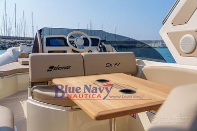 Concessionario ufficiale Solemar - Blue Navy Nautica propone in vendita il gommone dimostrativo che è stato esposto al Salone Nautico di Genova 2025 - Solemar SX 27 motorizzato con Mercury 300cv V8 VERADO di color bianco.