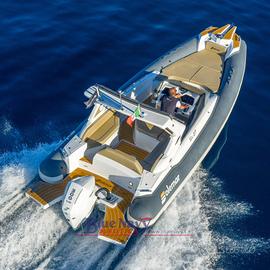 Il gommone, oltre dotazioni di serie, è cosi equipaggiato : strumentazione Raymarine Essential (con GPS 7),Kit linea 220V con presa banchina e carica batteria, kit Rollbar in vtr allestito con tendalino inox, Upgrade ancora e musone in acciaio inox, plancette maggiorate con scaletta a scomparsa, tavolo pozzetto in teak asportabile con cuscino addizionale, caricabatterie per smartphone wireless in consolle, kit allestimento bagno con wc, oblò e impianto acque nere.