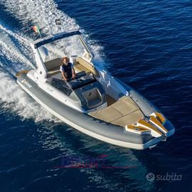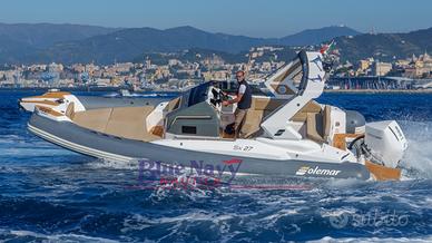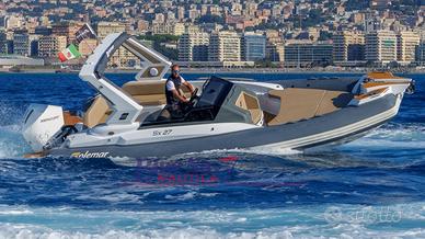 Concessionario ufficiale Solemar - Blue Navy Nautica propone in vendita il gommone dimostrativo che è stato esposto al Salone Nautico di Genova 2025 - Solemar SX 27 motorizzato con Mercury 300cv V8 VERADO di color bianco.