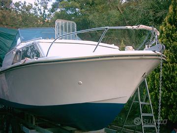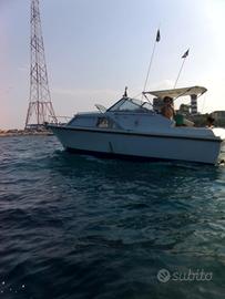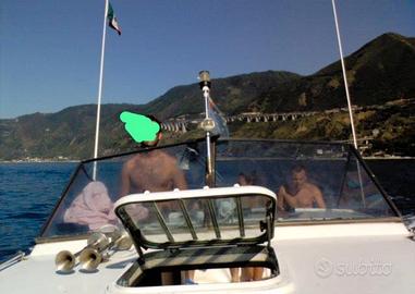 Barca ideale per diporto e camping nautivo. 7,44 metri piu' spiaggetta di 1 mt con doccino, larghezza 2.5 mt, altezza 0,74. Scafo in vetroresina planante con eccezionale tenuta di mare. Motore entrofuoribordo VOLVO Penta da 175cv diesel.Capacita' per 8 persone.