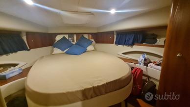 Space 360 cantieri di Livorno anno 2008, motori FPT 370 ore moto 976 di cui circa 700 fatti a 5 nodi utilizzata per la pesca e crociera lento moto. 2 Cabine , di cui una matrimoniale edc latra con letti in piano trasformabile in matrimoniale anch'essa, bagno con doccia. Lavori di Restylin 2023/2025 : Paravento Fly rifatto nuovo, cruscotto fly rifatto nuovo con manometri nuovi e pulsantiera nuova, tappezzeria esterna ed interna rifatta nuova da primaria tappezzeria nautica Campana, tendalini, oscuranti vetri e poppa nuovi. Dotato di tendaggi invernali chiusura fly e Poppa, doppia moquette interna Invernale ed estiva. Teak Pozzetto, spiaggetta di poppa rifatti a massello nel 2023, mentre il carabottino passerella rifatto 2025. Plancia di comando interna con manometri e pulsantiera rifatto 2024, frigi esterno di 60 lt ed interno di 70 lt con congelatore di 20 lt acquistati nuovi 2024. Prese corrente asciugo e usb posti ai comodini delle cabine. Specchi in tutte le cabine e bagno rifatti nuovi.