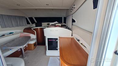 Accessori ed Impianti : 2 TV di cui quella in cabina 32 pollici, Impianto aria condizionata Climma , generatore Mase 5,5 Kw (con soli 40 ore) 4 batterie Fiamm da 180 hm anno 2024, 2 contacatene di cui uno ripetuto sul fly, GPS geonav da 10 pollici in Plancia e da 6 sul Fly, 2 WHF, Pilota Automatico ripetuto su Fly, catena da 100 mt ed Ancora 2024, Boiler ed impianto acqua Calda in tutta la barca, Impianto acqua diretta in Banchina. Luci subacque notturne.