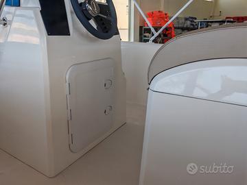 Il costo comprende l'imbarcazione dotata di tutti gli accessori standard, tappezzeria De lux a rombi, tendalino 3 archi grigio, fascia carena grigia, kit tavolo scomponibile, motore Honda BF 40E (SENZA PATENTE) completo di accessori motore e montaggio.
