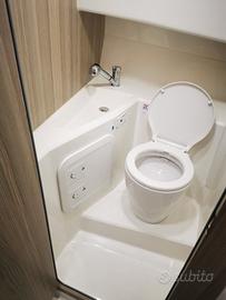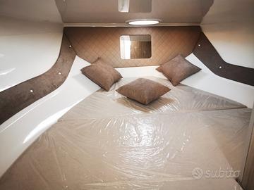 Presenta due posti letto interno cabina (lunghezza letto 2.10), un bagno completamente separato dove si sta completamente in piedi (altezza calcolata 1.75), una larghezza di 2.50m, una lunghezza di 5.85 m ed 8 persone a bordo.