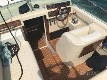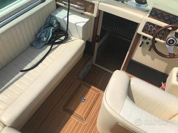 Vendo per passaggio a categoria superiore splendido Colombo 27 Antibes vero affare tenuto da amatore, meglio del nuovo, barca con tenuta e finiture incredibili. Integralmente refittato ma originale. Sempre solo lago di Garda, comprato e rimessato da Casarola manutenuto li o dalle Caravelle. 2x250 Mercruiser, uno nuovo, uno portato a 0 ore. Solo 600 ore da nuova, nell 82. Customizzazione con divano a L (molto piu spazio per convivialita e stivaggio), cabina nuova in raso blu. Full, full optional, frigo, stereo alpine, salpancora eletrrico, wc, doppia ancora, doppio telo, tripla batteria, carrello, tutto teak in pozzetto con finiture beige, parabrezza nuovo, oblo nuovo, comandi nuovi cromati, doccia, tavolo teak. La barca è un vero gioiello, vendo per passaggio a 15mt da mare. Spesi oltre 60.000 euro per portarla al top.
