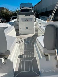 Vendo gommone SPX 24 dinette nuovo. Prezzo: €64.900 CON 250 HONDA NUOVO: € 84.900 Per informazioni contattatemi al: 3935824521 ACCESSORI E DOTAZIONI INCLUSI NEL PREZZO: Salpancora elettrico 700w + ancora inox kg. 5 + catena mt. Cuscineria Sun Tropical Tendalino telescopico parasole a 3 archi in acciaio 316 Passamano di risalita acciaio Poggiapiedi ribaltabile rivestito in teak Impianto Hertz Consolle guida completa di parabrezza rinforzato e deviatore d'aria Controstampata nel gavone di poppa Vano spogliatoio completo di controstampata Timoneria meccanica con volante e accessori Resina Vinilestere + Gelcoat neopentilico Tubolari Orca 1670 dtex Impianto elettrico completo + pannello quadro N°2 Porte USB Cuscineria a cellule chiuse completa, colore e cuciture personalizzabili Sedile guida con maniglie laterali rivestite in pelle Rete portaoggetti in consolle Consolle rifinita con piastre effetto carbonio Tientibene acciaio Aisi 316 L sulla consolle e sulla seduta N°2 scalette N°2 doccette Impianto doccia con serbatoio d'acqua dolce 100 It. Lavello completo di miscelatore in acciaio inox a scomparsa Predisposizione frigorifero a pozzetto 22 It. Pompa di sentina elettrica Serbatoio carburante 210 It. in polietilene reticolato con indicatore Blower per aspirazione tumi Tasti consolle retroilluminati + bussola retroilluminata Tromba con griglia cromata Allestimento dinette N° 2 bitte a poppa e 2 a prua Luci di via + luce di fonda con asta in acciaio inox Schienale a ribalta Tavolo centrale Tavolino a scomparsa a poppa con portabicchieri Plancette di poppa N° 11 Luci led N° 2 batterie 80 Ah W.C. chimico Gavoni illuminati Piastre laterali in acciaio Allestimento dinette Full teak sintetico [pozzetto + cabina) in varie tonalità colore Timoneria idraulica Seastar completa x 300 Hp N° 11 Luci led di cortesia (su plancia di poppa, cammininamento pozzetto e gavone di poppa)