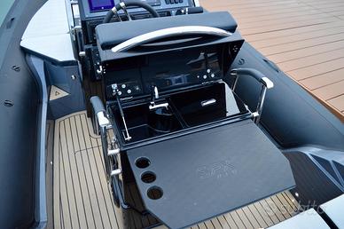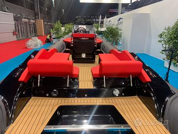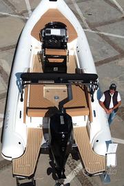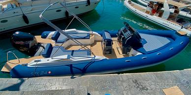 Spx 24 Nuovo da motorizzare Versione Dinette Gelcoat Nero Tubolare Nero Carbon Full teak sintetico Wc N 11 led pozzetto Timoneria idraulica 2 batterie Doppia scaletta Doppia doccetta Salpancora elettrico Lavandino Tendalino in acciaio N2 passamano di risalita Poggiapiedi a ribalta Tavolo amovibile a pappa Cuscineria Sun tropical bicolore Possibilità di montare le seguenti motorizzazioni.: Mercury. 225 v6 Tasso 0 Mercury 300 V8 Tasso 0 58500€ solo Gommone NB prezzo escluso iva.