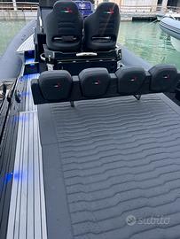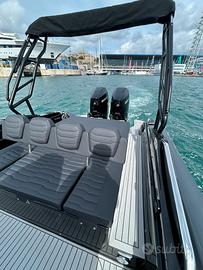 Spx 32 Demo Coppia 400 v10 pochissime ore 60 nodi Gelcoat Nero Tubolare nero Carbon Cuscini tropical Antracite Teak grigio fuga nera Ttop appena montato N2 pali in carbonio a poppa con tenda No Rollbar Impianto stereo Hertz con sub più amplificatore Luci subacquee blu/bianche Inverter 220 Presa di banchina Gavone di poppa elettroattuato 4 batterie N2 strumenti Simrad 12/15 pollici Interfaccia motori Contacatena Pianto cottura in vtroceramica Punta piedi Pacchetto luci full led pozzetto Blu Prolunghe prendisole poppa N2 passamano di risalita Versione 4 posti letto Cabina di poppa Elica di prua Doppio frigo Versione con Domotica Ventilatore in cabina 2 scalette 2 doccette Lavandino Copri consolle e seduta Wc Gommone in perfetto stato.