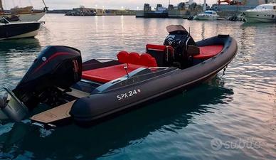 Spx Rib 24 Sport 2025 Prezzo Iva esc. Motorizzata Max 450cv Motorizzata Min 150cv Motorizzata consigliata 200cv versione Dinette: Possibilità di allungare il prendisole di poppa con una prolunga e con aggiunta un tavolo a poppa. Versione Sport: Ampio prendisole di poppa, con un gavone delle stesse dimensioni. Optional base: - Consolle guida completa - Controstampa nel gavone di poppa - Vano spogliatoio completo - Timoneria meccanica con volante e accessori - Resina vinilestere - Tubolari orca 1670dtex - Impianti elettrico - 2 Porte usb - Cuscineria a cellule chiuse - Sedile guida con maniglie laterali - Rete portaoggetti in consolle - Piastre consolle rivestite effetto carbonio - Piastre consolle colore personalizzabile - Tientibene acciaio Aisi 316L su consolle e in seduta - Scaletta inox a scomparsa - Impianto doccia con serbatoio da 100lt - Lavello completo di miscelatore in acciaio inox a scomparsa - Predisposizione frigo a pozzetto da 22lt - Pompa di sentina elettrica - Serbatoio carburante 210lt in polietilene reticolato - Blower per aspirazione fumi - Tasti consolle retroilluminati + bussola retroilluminata - Tromba con griglia cromata - Tavolo a scomparsa con porta bicchieri - Musetto di prua in Vtr + bitte - 2 Bitte a poppa e 2 a prua - Plancette di poppa con passaggio laterale - Luci di via + luce di fonda in acciaio inox - Schienale a ribalta per prolunga prendisole di poppa con 3 posizioni - Full teak sintetico - Plancette di poppa - 2 Doccette - 2 Scalette - 11 Luci full led - 2 Batterie 80Ah - Wc Chimico - Gavoni illuminati - Timoneria idraulica - Piastre laterali in acciaio Con tanti optional da aggiungere DF Nautica Ci troviamo in Via Mortelleto 4, Torre Annunziata (NA), 80058 Telefono: Francesco Possibilità di motorizzazione e finanziamento in sede