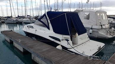 Bellissima STAMA 28, motorizzata con 2 x Volvo Penta 4.3 GL/SX a Benzina con poche ore di moto (Circa 430). Importanti lavori effettuati ai motori: COLLETTORI-SOFFIETTI -RAISER. Interni composti da N.2 cabine: una 1 armatore, cabina ospiti con letto matrimoniale in piano, locale bagno con doccia, wc, lavello mensola porta oggetti. Angolo cucina con 2 fuochi, 2 frigo, lavabo in acciaio, Boiler acqua calda. Serbatoio acque bianche 100 It - 2 Serbatoi carburante da 180 It. - Carica batterie 60 ampere - 4 batterie sostituite a giugno 2025 - Ampio pozzetto con divanetto dinette che diventa un ampio prendisole/letto, - Tappezzeria nuova 2024 - Ampia spiaggetta di poppa con doccia (calda/fredda) - Tendalino integrale anno 2023 Copri consol strumenti - Copri pozzetto invernale - Ampio prendisole di prua e di poppa con cuscineria nuova 2023 - Gps lowrance 7 cartografico ecoscandaglio con trasduttore - VHF lowrance - Verricello Salpa ancora elettrico con telecomando verricello ancora 10kg - Flap idraulici con indicatori - Presa banchina n 2 prese 12v per pesca - Porta canne - Radio lettore dvd, cd, - Tv 28 pollici 12/220 volt - Faro led - 3 pompe sentina - Rollbar abbattibile - Tavolo pozzetto - Elica di prua La barca si presenta con tagliando motori ed antivegetativa già effettuati, pronta per la messa in acqua. Accettasi permute: Cranchi, Sessa, Jeanneau, Beneteau, Rio, Salpa. Richiesta: 35.000+Saldo Finanziamento