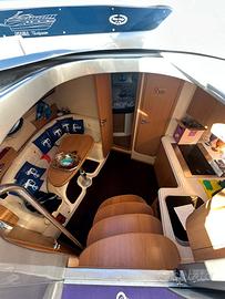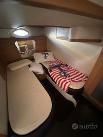 Splendido Stama 37 in ottime condizioni, anno 2009, con motori Diesel Volvo Penta D4-260 (2x260) sole 310 ore di moto, perfetta per la navigazione in costiera con comfort e sicurezza, arredamento moderno e full optional, gruppo elettrogeno, aria condizionata, pilota automatico, GPS, radar. Ampio prendisole di poppa con vano elettrico per alloggio tender, compreso di motore elettrico 0 ore, nuovi. Sulla dritta divano a U con tavolino, a sinistra chaise longue il tutto corredato di tappezzerie, plancia di comando con seduta pilota. Qualche ritocco di carrozzeria da fare e teak da riprendere. Cabina armatoriale a prua con TV schermo piatto, installata in salone, cabina di poppa con 2 letti in piano e con locale WC separato, cucina con lavello, piano cottura con n. 2 fuochi in vetroceramica KLARSTEN, forno a micro onde DELONGHI e frigo, dinette trasformabile, passerella elettrica con telecomando. Dotazioni di bordo: mobile living con lavabo, piastra e frigo VITIFRIGO C 35 BT, ROLL BAR in VTR con tenda parasole sia di navigazione che laterale, hangar tender con apertura elettrica, scaletta di risalita, passerella idraulica BIOINOX, rivestimento in teak per camminamenti passaggio laterali, blower, doppio prefiltro Racor.