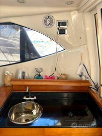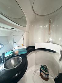 2 cabine, una alla sinistra e l' armatoriale a prua, successivamente troviamo un bagno con tutti gli elementi necessari, doccia con box, WC elettrico e lavabo.