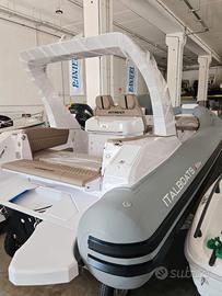 Dati tecnici: 7.48 X 3.04 , peso Kg. 1250, portata 14 persone, gambo XL, potenza max 300 Hp, potenza consigliata 250 Hp