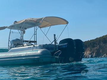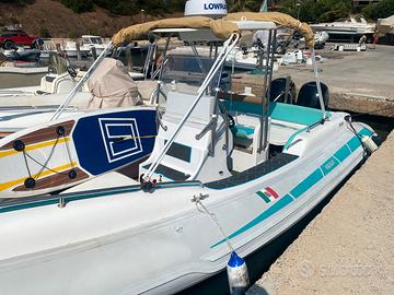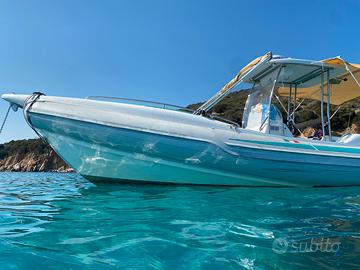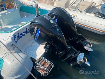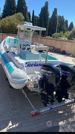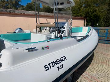 GOMMONE STINGHER 747 ( 8 mt) full optional tubolari nuovi ....bianchi appena montati con zero ore ( in foto ancora i vecchi tubolari ) con T-TOP VTR , FRIGO CON BANCO , TEK SINTETICO EVA SU TUTTA LA COPERTA , ECO 12 pollici LOWRANCE élite 12 , + eco gps LOWRANCE 9 pollici touch , radar LOWRANCE , vhf , impianto hi fi FUSION CON 4 casse .... Cusicnerie con prolunghe , ancora elettrica, doppio tendalino prua poppa, gommone del 2006 ma in buonissime condizioni, n' 2 motori YAMAHA 150 cv 4t del 2008 con 400 ore .., tutto euro 36000 .. vera macchina da pesca per appassionati ...o comodissimo per uso gite e crociere ..