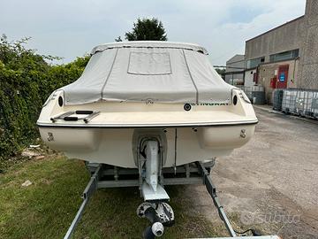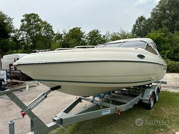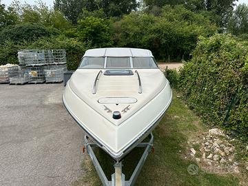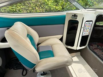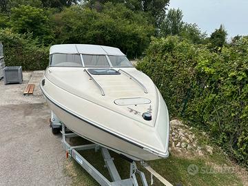 Bella imbarcazione natante di circa 7 metri con motore efb 4.300 V6 da 225 cv con sole 554h ma completamente rifatto e veramente perfetto; piede duoprop per consumi bassi e prestazioni notevoli; cabina con 2 posti letto, capottina camper per campeggio nautico, 2 ampi prendisole a prua e a poppa...pronta per qualsiasi prova.