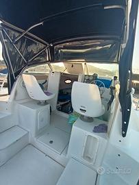 Descrizione Striper 2601, Cantiere Seaswirl, Scafo americano, Anno 2005, Lunghezza 7,80 m, Larghezza 2,59 m, Pescaggio 0,61 m, Dislocamento 3884 Kg, Potenza massima installabile 320 hp, Portata persone 8, Serbatoio carburante 600 l, Serbatoi acqua 50+50 l, Categoria CE B. Disposizione interni: - Dinette trasformabile - Zona cucina con fuochi e lavello, - Bagno in locale separato Unico proprietario, OTTIME CONDIZIONI GIUGNO 2025 lucidatura di tutta la barca Carena a zero Nuova antivegetativa installata seconda pompa sentina installato ulteriore serbatoio acqua Sostituito cristal tendalino.