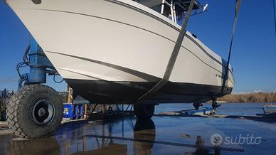 Accessori Ecoscandaglio Furuno 586 con sonda passante da 1kw. Gps Raymarine, Vhf Garmin, Vasca vivo con pompa, T-Top soft, Tendalini chiusura parziale invernale, Vasche pescato 2, Presa mulinello elettrico 2 portacanna per mulinello elettrico, 4 portacanna in pesca, 8 portacanne a riposo, 2 portacanna orientabili per bolentino, Scaletta risalita, Teak sintetico, Ricovero sotto consolle con wc chimico.