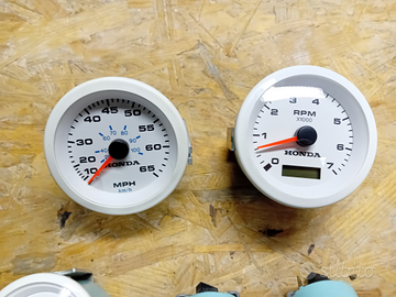 Strumenti analogici originali honda marine Colore bianco, in buono stato pari al nuovo Kit completo con cavo originale per il cablaggio Usati poco nessun segno di usura Disponibile per spedizione