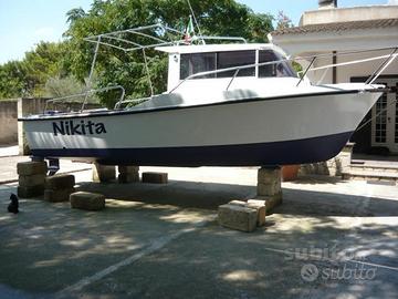 Mitica marlin conaplastic mt 7.50 f.t. stupenda interamente messa a nuovo vernici veneziani stupenda cabina coibentata poltroncine piegabili girevoli e asportabili ampi gavoni interni bussola eco gps stereo marino luci interne ed esterne luci di emergenza tromba luci di via stacca batteria quattro posizioni due batterie 80 amp strumento controllo carica batterie invertitore 12 volt a 220 prese banchina 220 prese 12 volt esterne per eventuali mulinelli elettrici o altro due pompe sentina autoclave per lavare barca doccia esterna serbatoio acqua 50 litri serbatoio benzina 55 litri piu uno da trenta di scorta ampio invaso di poppa in stupendo legno merbau catalafato sedili ai lati con gavoni e attrezzature di bordo tre gavoni di poppa per due batterie serbatoio benzina di scorta e attrezzi pesca grande gavone sotto il piano calpestio per il serbatoio aqua e benzina 55 litri 4 portacanne traina tendalino inox mt.1.80 estendibile a mt.2.80 Motore evinrude 920 75 cv due tempi perfetto. Tutti i materiali e accessori bottazzo acciaierie sono completemente nuovi Naviga meravigliosamente solcante 15 nodi crociera in planata 20 nodi velocita massima naviga 30 nodi con il motore gia montato 75 evinrude. Le porte cabina sono scorrevoli e asportabili per eventuali altre info o foto telefonare.Prezzo da 13300 svendo prezzo affare 9400 per inutilizzo e perche mi serve spazio.3662101583